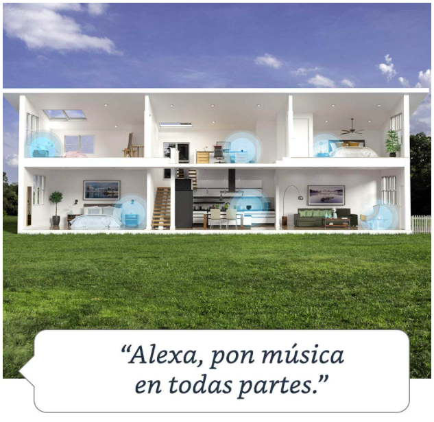 - Controla por voz tu entretenimiento – Reproduce canciones desde Amazon Music, Apple Music, Spotify, Deezer, y más. Reproduce música, audiolibros y podcasts en tu casa, con música multi-room.